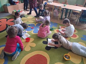 Dnia 27 marca 2026 roku w naszym przedszkolu zostały zorganizowane kreatywne wielkanocne warsztaty zainicjowane przez Panią Mirosławę Siemieniuk-Morawską z gminnej biblioteki. Przedszkolaki z zaangażowaniem przygotowywały kolorowe kulki potrzebne do wyklejenia szablonu zająca, który jest symbolem nadchodzących świąt. W przestrzennej ozdobie wielkanocnej były wykorzystywane również inne materiały min. kolorowe jajeczka i piórka. Podczas spotkania nie zabrakło okazji do czytania świątecznej literatury, w której na uwagę zasługuje tekst wyrazowo-obrazkowy opracowany przez panią bibliotekarkę. Dzięki niemu dzieci mogły aktywnie włączyć się do wspólnego czytania. Spotkanie przebiegało w miłej i serdecznej atmosferze, a kolorowe i wyjątkowe prace pozwoliły nam poczuć nastrój zbliżających się świąt. Dziękuje serdecznie Pani Mirce za pomysły i kreatywne podejście do prezentowanej literatury i zapraszamy do obejrzenia fotorelacji z tego radosnego wydarzenia.