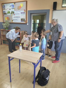 Na koniec z torbami i podarunkami przemaszerowaliśmy szkolnymi korytarzami, zaglądając do klas do naszych starszych kolegów. Chcieliśmy im nie tylko pokazać w jaki sposób świętowaliśmy nasz dzień, Dzień Przedszkolaka, lecz przede wszystkim zwrócić uwagę na to, iż my małe przedszkolaki jesteśmy ważną częścią szkoły.