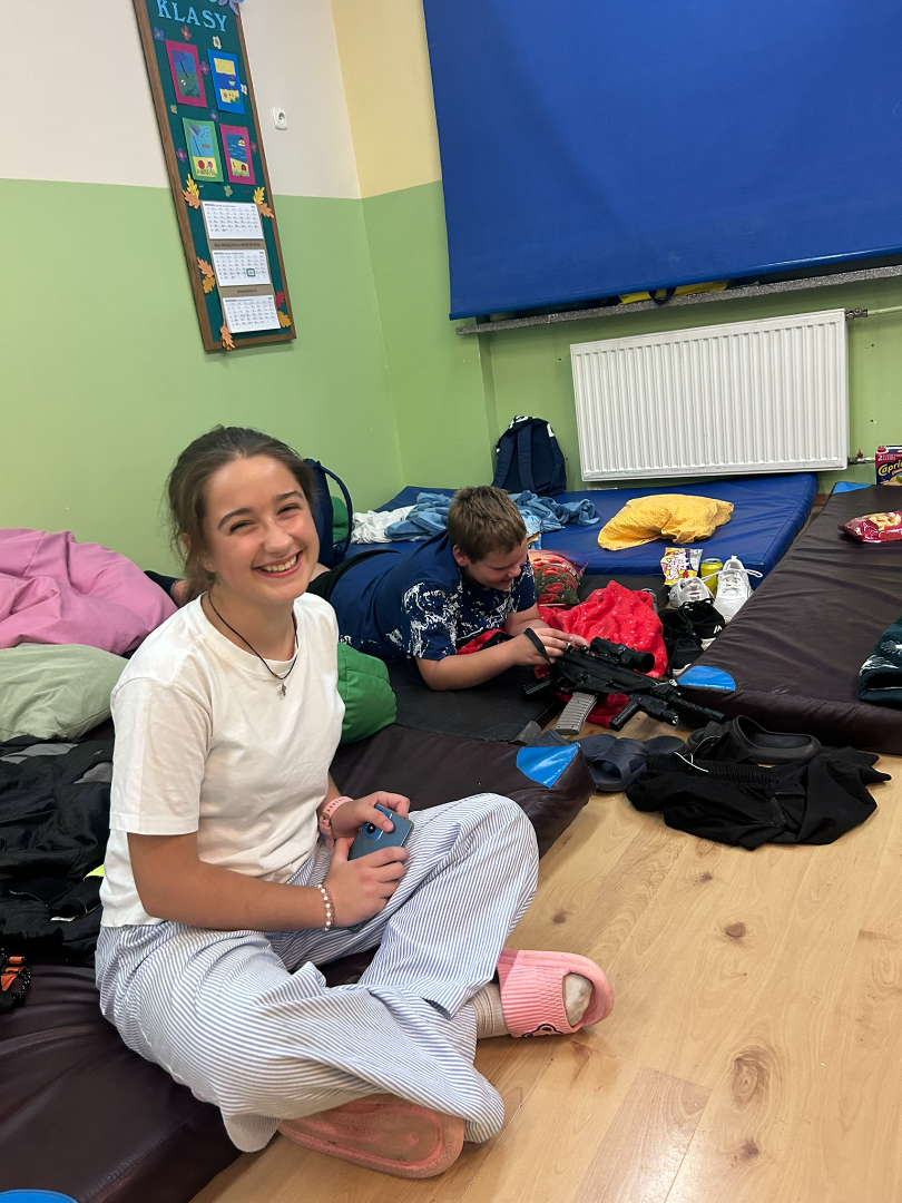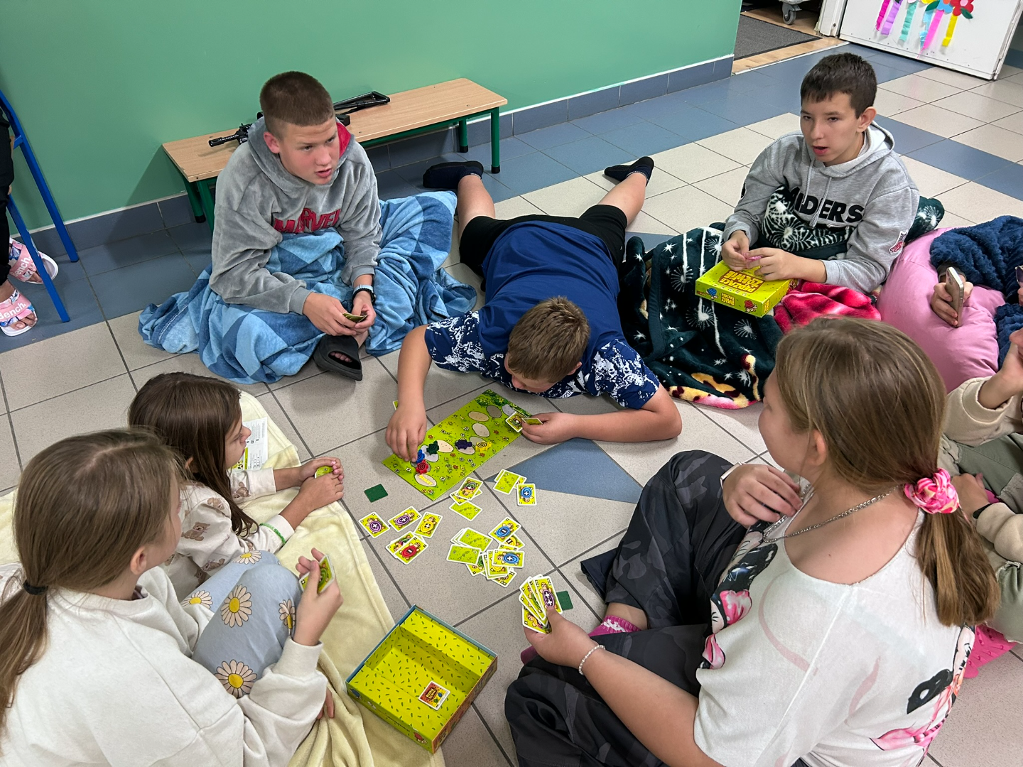 Już od pierwszej chwili było wiadomo, że będzie się działo – rozkładanie karimat i śpiworów to przecież sport ekstremalny, a niektórzy uczniowie odkryli w sobie talenty architektów, budując prawdziwe fortece z koców.