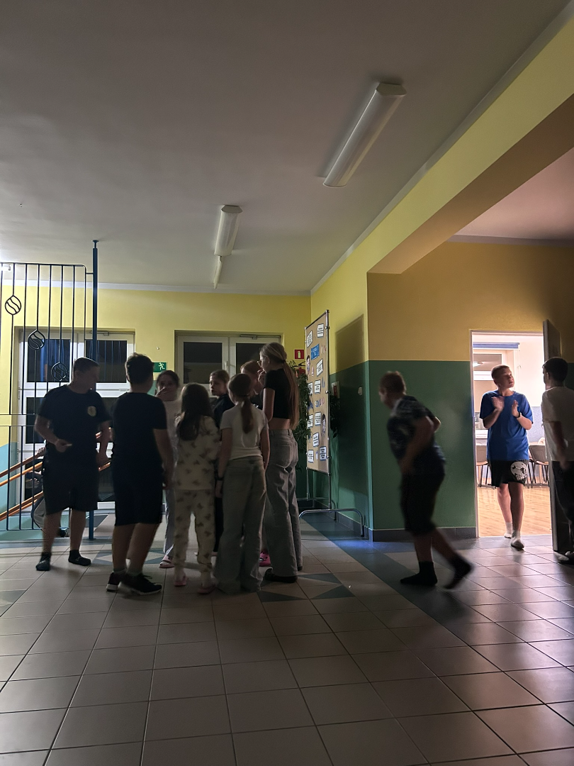 Oczywiście nie mogło zabraknąć klasyki – gra w chowanego w szkolnych korytarzach okazała się hitem wieczoru. Nikt nie spodziewał się, że szkolne zakamarki mają aż tyle kryjówek! 👀🙈