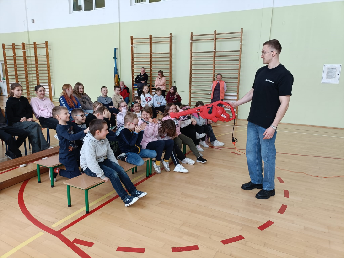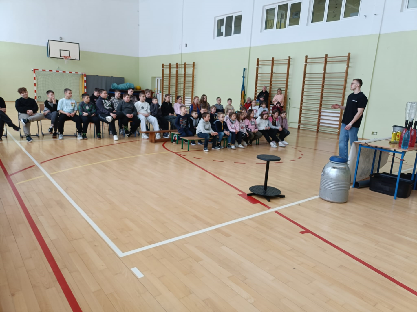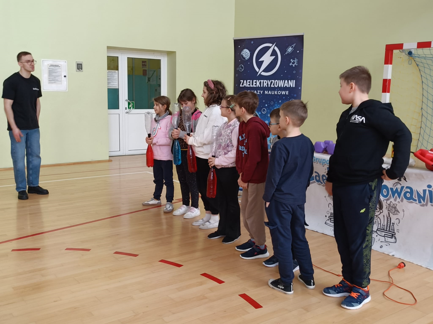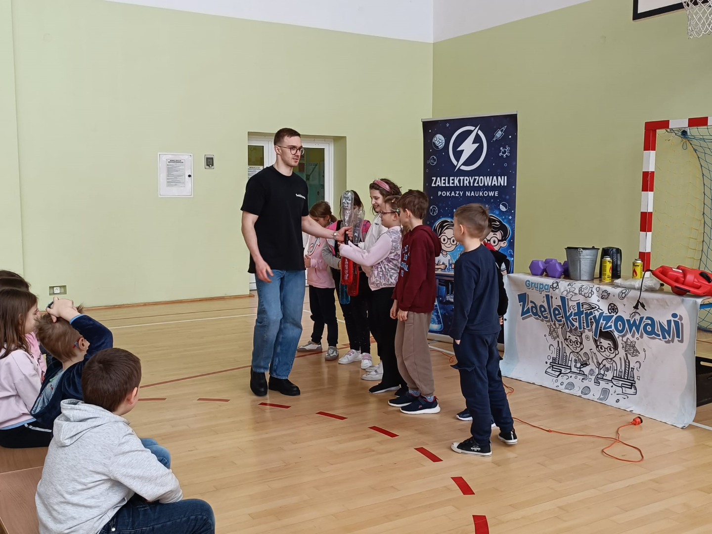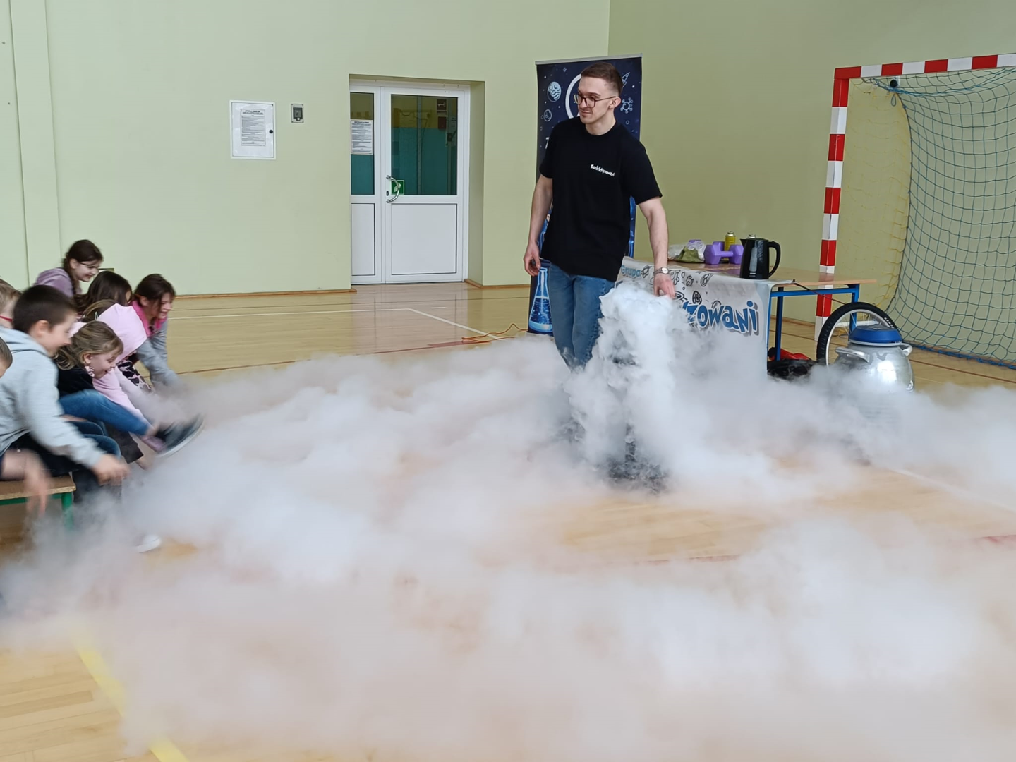 Animator w świetny sposób łączył wiedzę naukową z elementami humoru, tworząc przyjazną atmosferę i zachęcając dzieci do nauki poprzez zabawę. Spotkanie było nie tylko źródłem nowych informacji z zakresu chemii i fizyki, ale również okazją do świetnej zabawy. Uczniowie z radością i dużym zaangażowaniem uczestniczyli w pokazie, spędzając czas w sposób pożyteczny i niezwykle inspirujący.