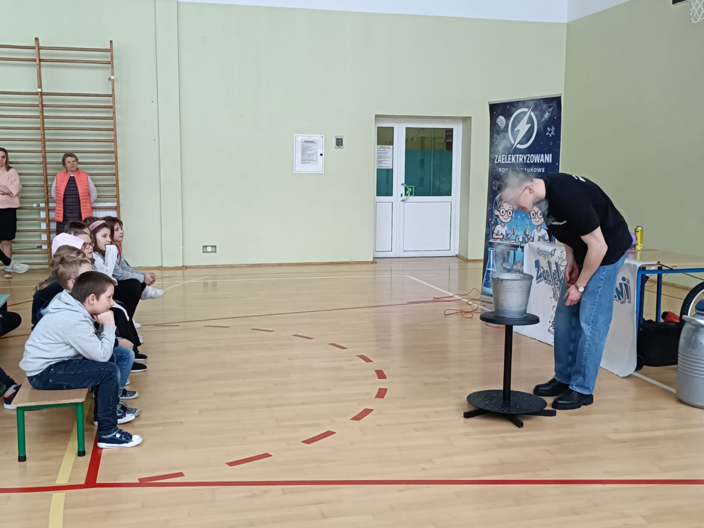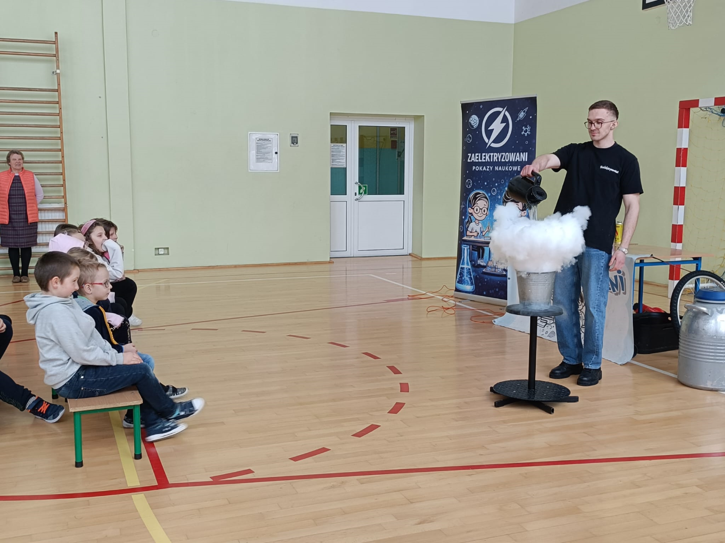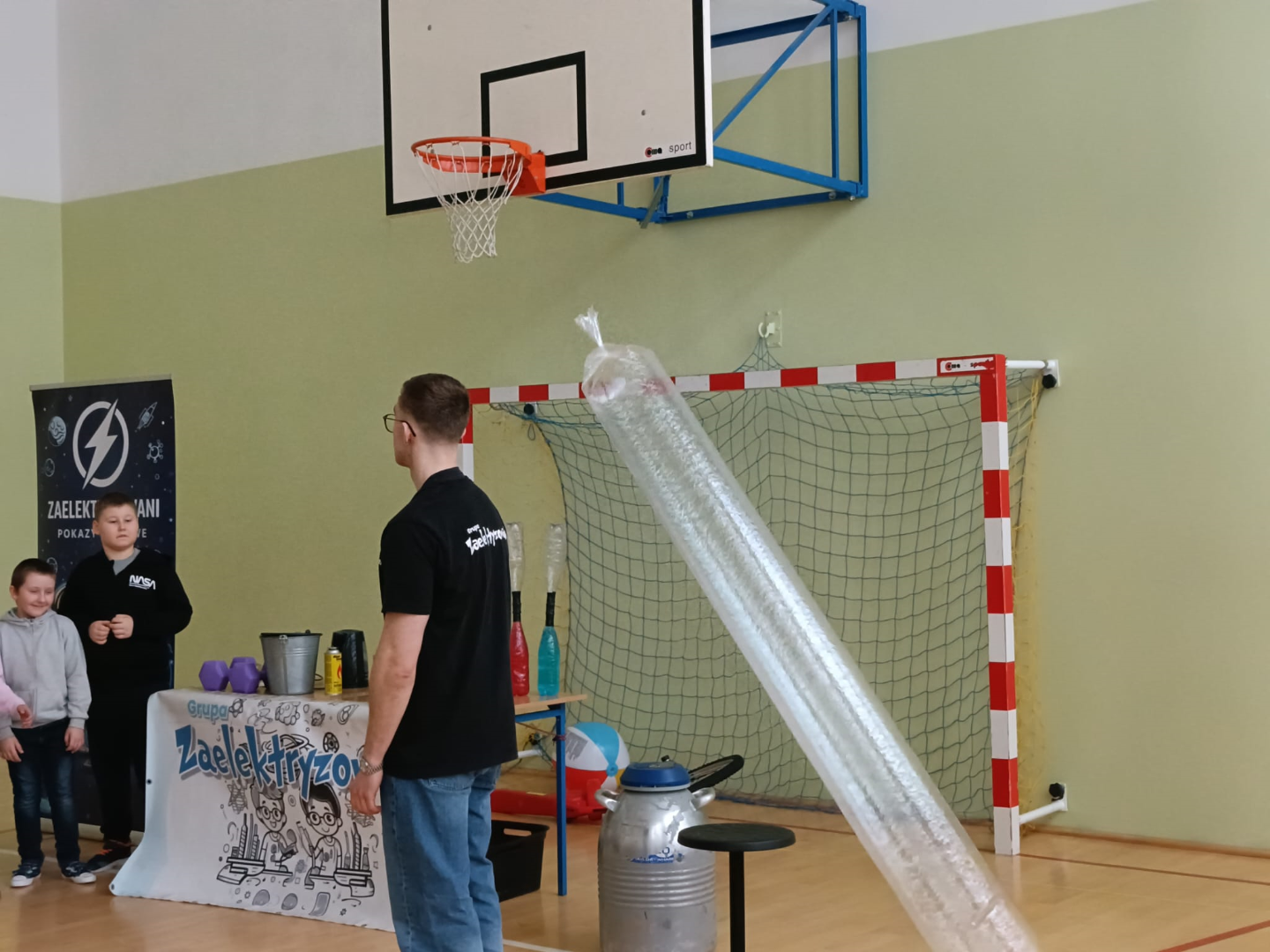Pokaz wzbudził ogromne zainteresowanie uczniów, którzy nie tylko z zapartym tchem obserwowali doświadczenia, ale również aktywnie uczestniczyli w wybranych eksperymentach.