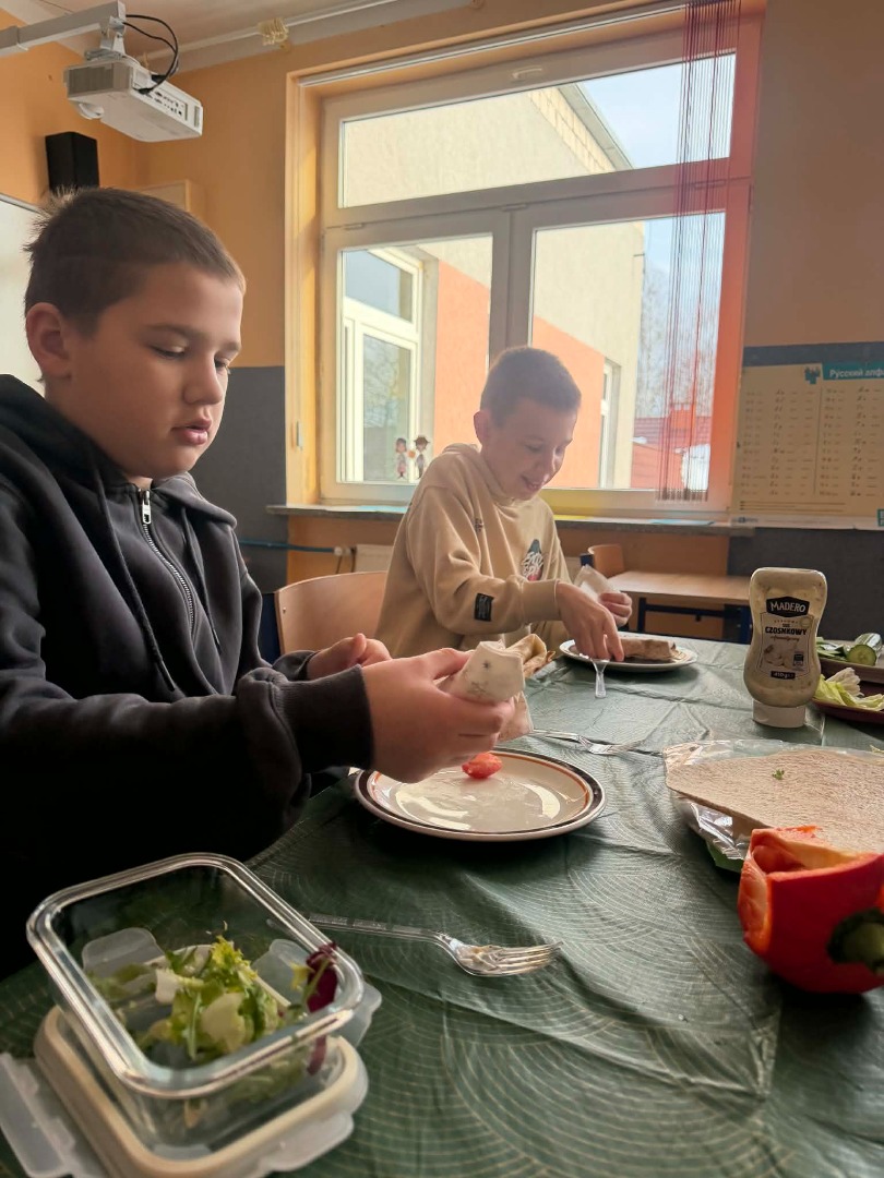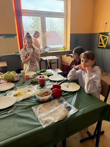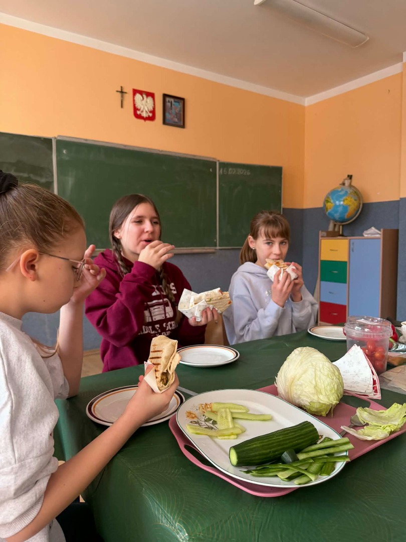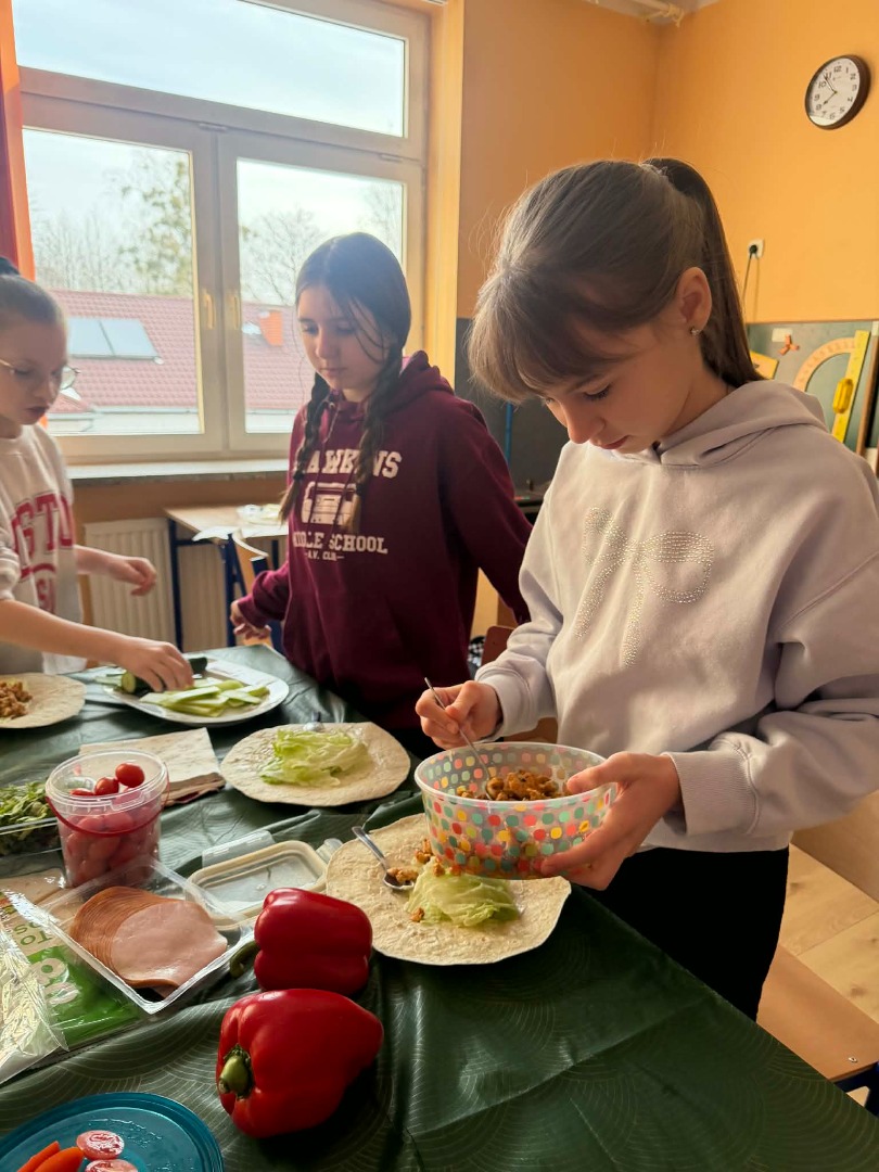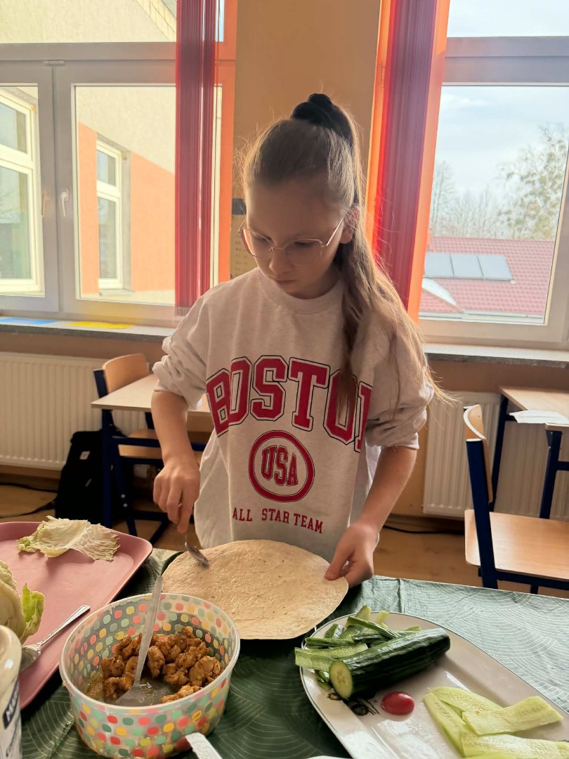 Było zdrowo, kolorowo i przede wszystkim – pysznie. Okazuje się, że 5 klasa zna przepis na sukces: garść witamin + szczypta współpracy + dużo dobrego humoru = idealna tortilla.